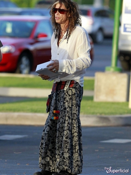 <What bullshittery is Steven Tyler rockin’? I do believe it’s Sex-Be-Gone pants!>
